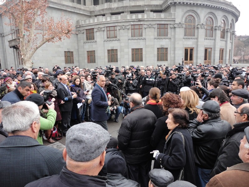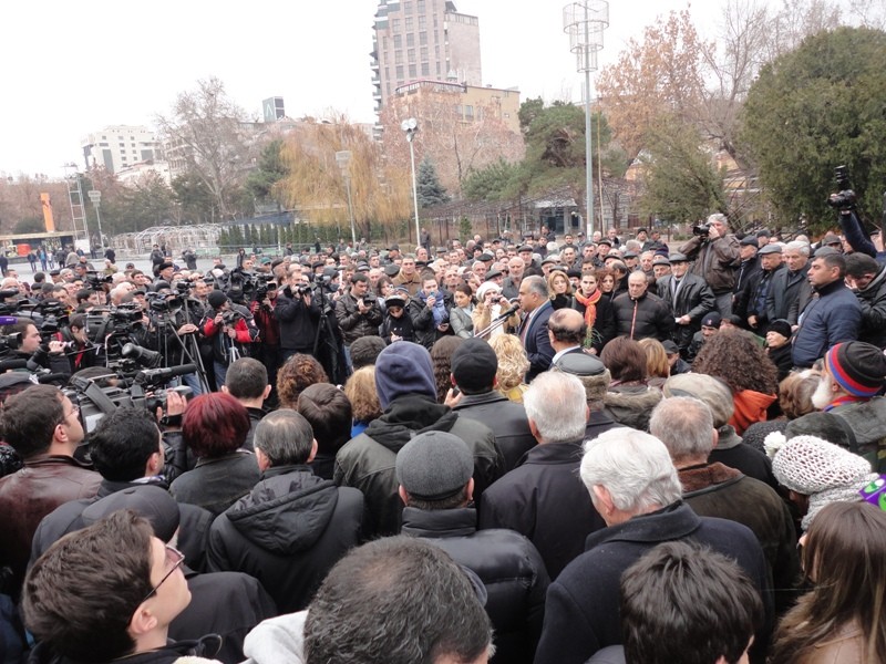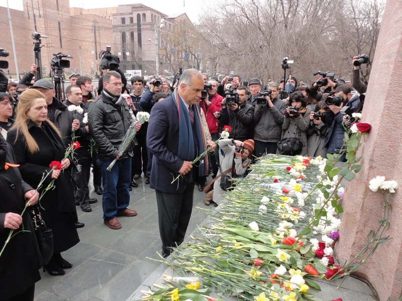 1 մարտի 2013թ., Երեւան: Մայրաքաղաքի փողոցներում տեղի ունեցած ազգային ողբերգության հինգերորդ տարելիցի կապակցությամբ Րաֆֆի Հովհաննիսյանն այսօր Ազատության հրապարակում հրավիրել էր բացօթյա մամլո ասուլիս: Ելույթ ունենալով հավաքված քաղաքացիների եւ լրագրողների առջեւ, Հովհաննիսյանը խոսեց 2008թ. նախագահական հերթական ընտրություններից հետո տեղի ունեցած մարտի 1-ի դեպքերի մասին, որի ընթացքում զոհվեցին 8 քաղաքացիական անձինք եւ 2 ոստիկան: