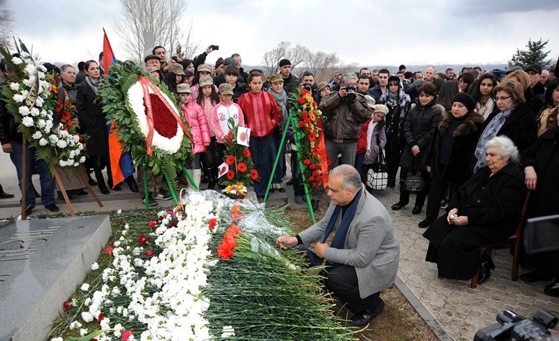 5 մարտի 2013թ., Երեւան: Րաֆֆի Կ. Հովհաննիսյանն այսօր այցելեց Եռաբլուր հուշահամալիր-պանթեոն, որտեղ մարդիկ հավաքվել էին նշելու զոհ գնացած ազգային հերոս Վազգեն Սարգսյանի ծննդյան օրը: «Մենք այսօր զգում ենք նրա վիթխարի ուժը», - ասաց Հովհաննիսյանը՝ հավելելով, որ «Մեր ազգի համար այս պատմական ժամանակաշրջանում նա մեզ ոգեշնչում, ուժ եւ կորով է հաղորդում»: