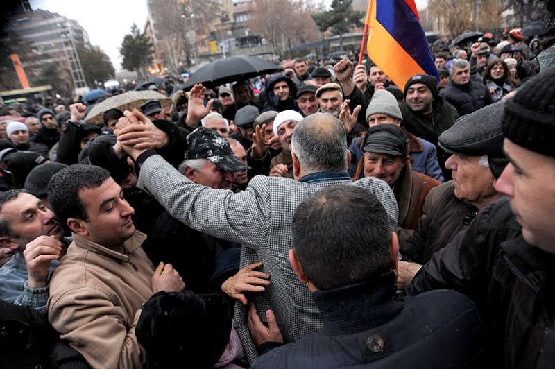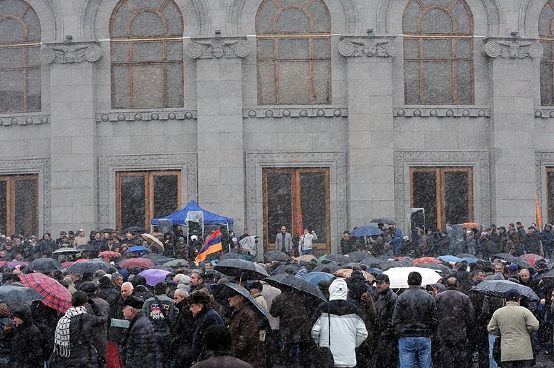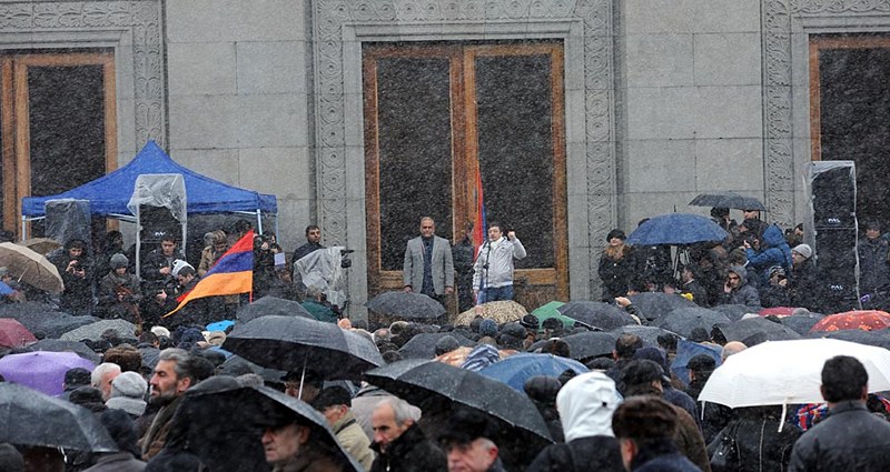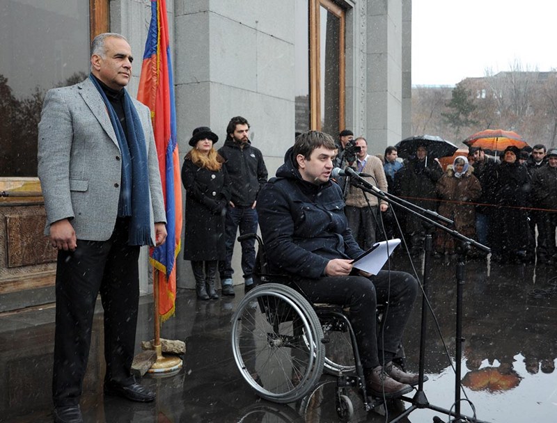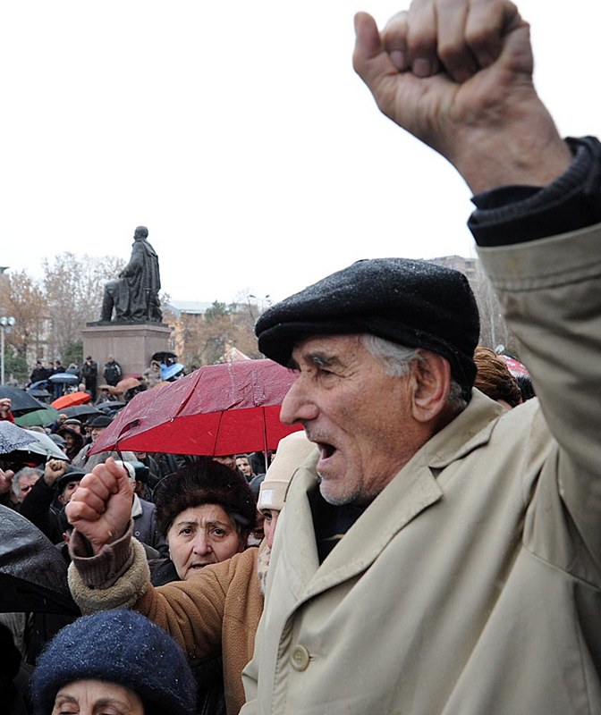 Այնուհետեւ Ազատության հրապարակում Րաֆֆի Հովհաննիսյանը, փորձելով վանել մռայլ հիշողությունները, տեղացող ձյան տակ հավաքված ժողովրդին դիմելով՝ խարազանեց իշխանություններին, որոնք անհույս պատերազմ են վարում ազգային կամարտահայտության դեմ: «Նրանց օրերը հաշված են,- հայտարարեց Հովհաննիսյանը, - ժողովրդի հաղթանակը մոտ է»: