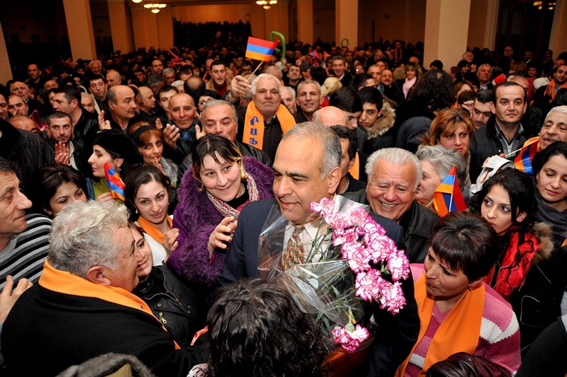 Երեւան: ՀՀ նախագահի թեկնածու Րաֆֆի Հովհաննիսյանն այսօր նախընտրական քարոզարշավն անցկացրեց դահլիճային ձեւաչափով: Կառավարության տան նիստերի դահլիճի լեփլեցուն նախասրահում, որի մուտքն ազատ էր, թեկնածուն հանդիպեց ընտրողների, քաղաքացիական հասարակության ներկայացուցիչների ու համակիրների հետ եւ ներկայացրեց իր ծրագրային հիմնադրույթները, որոնք նա պատրաստվում է ընտրվելու դեպքում կենսագործել՝ հենվելով հանրային լայն շերտերի աջակցության վրա եւ նրանց հետ միասին: