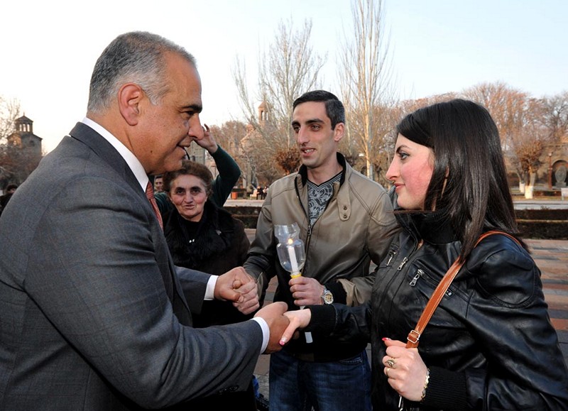 Արմավիրի մարզում քարոզարշավի վերջին կանգառը հայոց հոգեւոր մայրաքաղաքն էր, իսկ ընտրողների հետ գլխավոր հանդիպավայրը՝ Էջմիածնի երաժշտական դպրոցի բազմամարդ դահլիճը: Հանդես գալով ելույթով՝ նախագահի թեկնածուն մասնավորապես ասաց. «Այսօր տեղի է ունենում ժողովրդական զարթոնք եւ Հայաստանի քաղաքացին ցույց է տալիս, որ պատրաստ է փետրվարի 18-ին հետ բերել իրեն պատկանող իշխանությունը եւ տեր կանգնել սեփական երկրին»: