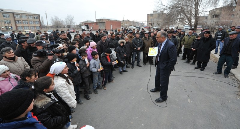 Մայիսյան-Արագածավան ճանապարհահատվածում նրան աղուհացով դիմավորեցին ինքնաբուխ հավաքված Արտենիի ընտրողներ՝ թվով շուրջ 200 մարդ: