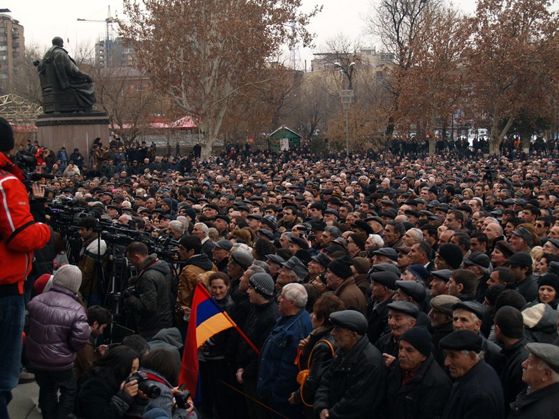 Երեւան: Րաֆֆի Հովհաննիսյանն այսօր Ազատության հրապարակում նախագահեց աջակցության աննախադեպ ցույցը, որտեղ տասնյակ հազարավոր մարդիկ հավաքվել էին վանկարկելու «Հա-յաս-տան» եւ ընդունելու իրենց օրինական նախագահին: